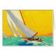 French and European Travel Advertisements - Blue sea and sunny yellow sky illustration