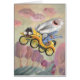 Monster Automobile. Broom, bezem... De motor werkt, de snelheid is hoog. Hier rijden we op de rit van ons leven. Drie monstervrienden sprongen gewoon in de gele oude timer wagen. Eén monster is groot en vaag, de tweede is middelgroot en draagt blauwe pajama, en de derde is echt kleine kerel. Samen zijn het ventilatoren van auto's. Ze houden van reizen maken rond de landzijde, vooral als het weer mooi is - de zon schijnt en wolken glimlachen. Ze genieten gewoon van hun oude gele auto. Vooruit, vrienden!