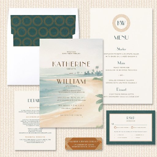 Vintage Sunset Retro Coastline Deco Wedding SuiteConçu par Christine Ellis