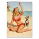Vintage fille et chien sur la plage