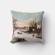Kussen met de Andrew Melrose schilderij van kerstavond in de vroege jaren 1900 buiten een besneeuwde, kleine stadskerk.