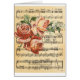 Mooie vintage / Victoriaanse ontwerp met achtergrond van antieke bladmuziek met overlay van full color vintage rozen trio illustratie