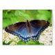 Avec des ailes bleues chatoyantes, un papillon pourpre tacheté rouge, tout près, sur des fleurs blanches de l'Spirea de couronne nuptiale, dans notre jardin du New Hampshire.