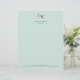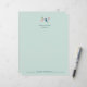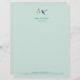 aangepast letterhoofd met een paardenkolibrie op een lichte turkooisachtergrond. De doopvontstijl, de doopvontgrootte en de doopvontkleur kunnen worden veranderd door op "verder aan te passen" te klikken.