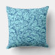 Op de oceaan geïnspireerde gooikussens met veel blauwe vis van verschillende vormen en maten.