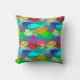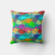 Deze gooiende kussen hebben een ontwerp van een school vissen in groen, blauw, oranje, geel, rood, roze en blauw-groen zwemmen in de oceaan. Geweldig voor kinderen!