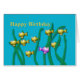 Een schattige cartoon van een school vis in geel, een vis is paars en zwemt andersom. Vrolijke verjaardag op de voorkant. Binnen de naam van je kind en jij bent een soort van soort.