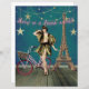 Vignette vintage amusante et amusante avec découpe photo fille flapper, vélo rose, Tour Eiffel, un arrière - plan en détresse avec une guirlande d'étoiles et texte "Lives in a Dream World" en police rose.