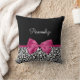Een trendy zwarte en witte luipaard druipt kussen met een levendig donkerroze lint gebonden in een schattige meisjes buiging. Pas dit stijlvolle diermodel aan door de naam van je tienermeisje toe te voegen. Vlak gedrukt afbeelding, geen echt lint.