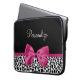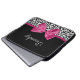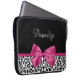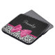 Een trendy zwarte en witte luipaard met een 15-inch neopreen laptophoes met een levendig donkerroze lint gebonden aan een schattige gaffelband. Pas dit stijlvolle diermodel aan door de naam van je tienermeisje toe te voegen. Vlak gedrukt afbeelding, geen echt lint.