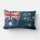 Dit object heeft een Australische vlag met een drukke stijl. De vlag heeft de vlag van de Unie (of de vlag van de Unie) in de hogere linkerhoek en zes sterren op een blauw gebied. *OPMERKING: Vanwege het ontwerp en de afmetingen van de Australische vlag verdient het ten zeerste aanbeveling dit ontwerp uitsluitend op een rechthoekige kussen te gebruiken. Het veranderen van dit ontwerp om op een vierkante kussen te passen kan in onbevredigende resultaten resulteren.