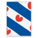 De vlag van Friesland, een provincie in Nederland. Het bestaat uit blauwe en witte diagonale strepen; in de witte strepen zijn rode pompblêden, bladeren van de gele waterlelie die één van de harten kunnen herinneren, maar volgens de officiële instructies "mogen niet hartvormig zijn".