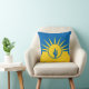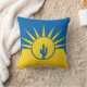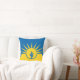 Drijfkussens met vlag van de stad Mesa, Arizona; gele en blauwe vlag met gestileerde illustraties van woestijn, cactus en stijgende zon
