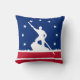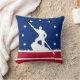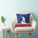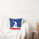 Throw pillow met vlag van Richmond, Virginia; blauwe vlag met rode en witte strepen, met witte strepen en silhouette van man die James River bateau onderaan de James rivier bedient