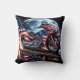 Een opvallende aangepaste motorfiets, geschilderd in de kleuren van de Amerikaanse vlag, rijdt langs een reflecterende weg onder een volle maan.
