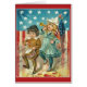 Patriottisch wenskaart. Schattige jongen en meisje met hun vlag, fife en drum! Wat voor lot ons ook moge zijn, kinderen van de vlag zijn wij!