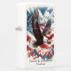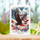 Eer de stijgende kracht van vrijheid met deze prachtige illustratie van een zeearend die hoog boven de wolken vliegt. Met de Amerikaanse vlag in zijn klauwen glijdt de adelaar over levendige rode, witte en blauwe bergtoppen. De scène combineert zachte wolkentexturen, artistieke potloodlijnen en sierlijke geschilderde schaduwen. "Trots om een Amerikaan te zijn" bekroont dit adembenemende ontwerp en herinnert aan alle schoonheid en moed in de Amerikaanse geest.