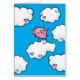 Een zwarte sjabloon met een schattig digitaal roze cartoon varken met kleine witte vleugels, dansend op wolken die met hart omhoog in de heldere blauwe lucht zijn beland. Voeg je eigen bericht aan de binnenkant toe om het elke keer te maken!