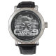 Dit is een Mannen Zwart Lederen Riem Horloge eWatch van Vliegtuigen drager Dwight D. Eisenhower. Vliegtuigen drager Dwight D. Eisenhower is een vliegtuigen drager.