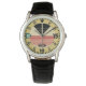 Horloge, Vintage Zwart Leer