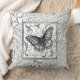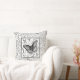 Decoratieve kussen met het ontwerp van de auteur van een vlinder en een patroon in grijze kleuren op een witte achtergrond