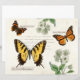 Dit plakboekpapier bevat drie gewone vlinders: de oostelijke tijgerslib, de gebilderde dame en de vorst die op een pagina als specimens met een wetenschappelijk keurmerk zijn aangebracht. Omvat Frans manuscript en witte wilde bloemen.