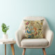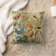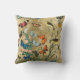 Decoreer uw huis met deze kussen met antiek botanische vlinders, vogels en bloemen in kleuren van sinaasappel, rood, blauw, groen, roze, zwart en bruin, op een elegant gouden kleurig damaspatroon. Ontworpen door © Tim Coffey.