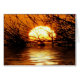 gouden zonsondergang in de horizon die in het water smelt , omgeven door het silhouet van de natuur