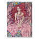 Een gestileerde illustratie van fantasiekunst, gekleurd met rijke tinten en paars.