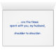Word aan de Wives ~ ~ Uw man wenst een schouder-aan-schouder vriendschap met u. Laat hem weten dat je het met hem eens bent.