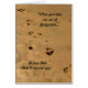 Foto van voetafdrukken op een zandig strand met bemoedigende woorden.