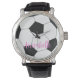 Dit is een voetbalthemahorloge heel gemakkelijk aan te passen, voor deze sjabloon moet u slechts de naam toevoegen. Dit is een groot aangepast cadeau voor verjaardagen, afstuderen, Kerstmis, feestdagen, als een appreciatie cadeau, en voor elke speciale gelegenheid in het algemeen. Elementen op de ontwerpsamenstelling, het voetbal, de roze kleuren, wit en zwart, het letterzetten kalligrafie.