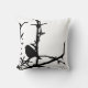 Deze hedendaagse kunstworp werpt een kussen met een zwart-wit modern abstract patroon van een donkere, donkere Junco (Junco hyemalis), die op een kale tak hoog in een boom staat. Deze vogel is eigenlijk een soort kleine, grijze en witte mus.