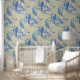 Vogels op takken en bladeren Ivory Blue Wallpaper Behang