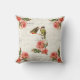 Twee prachtige vogeltjes op takken met roze rozen zitten op een lichte crèmeachtergrond met handschrift en tekst van een Frans winkelbonnetje om dit , nostalgische bloemige Franse en natuur thema kussen te maken.