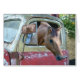Carte photo foutu mais amusant d'un cheval dans un vieux camion qui regarde par la fenêtre pour voir si c'est bon de passer