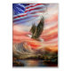 Un aigle vole à travers un coucher du soleil en feu avec les couleurs du drapeau américain dans cette conception patriotique. Vous pouvez ajouter votre propre texte à l'avant ou le laisser vide. Cette conception est particulièrement appropriée pour quelqu'un dans le service militaire ou pour n'importe quel Américain patriote. Elle peut facilement être adaptée pour une invitation à une cérémonie de récompenses d'honneur ou être employée comme carte de félicitations pour une obtention du diplôme militaire/Boot Camp.