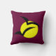 Dit geweldige kussen heeft een grote heldergele volle maan met twee zwarte vleermuizen die eroverheen vliegen. De achtergrond is rood waardoor het lijkt op een bloedrode hemel.