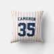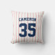 Baseball jersey strepen stijl gooien kussen met kleuren die volledig aanpasbaar zijn. Als u de achtergrondkleur wilt wijzigen, klikt u op aanpassen en wijzigt u de achtergrond van de voor- en achterkant. Als u de strepenkleuren wilt wijzigen, klikt u op Aanpassen, selecteert u ThinStripes1-laag voor zowel de voor- als achterkant en wijzigt u de vulkleur. Perfecte gooi kussens voor de mediaruimte of slaapkamer van een honkbalfan. Personaliseer het door de plaatsaanduidingstekst te vervangen. Voor meer opties zoals het wijzigen van het lettertype en de grootte/kleur, de afstand tussen letters of om gebogen tekst uit te vouwen of in te krimpen, klikt u op de knop "Aanpassen". *Het Zazzle-watermerk dat in het zoomvoorbeeld wordt weergegeven, wordt NIET weergegeven op het uiteindelijke afgedrukte product. © Rozenhout en Citrus
