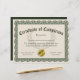 Schrijfformaat 8.5 x11" Certificaat van voltooiing om personeel, studenten, werknemers of iedereen een opleiding, school of programma te gunnen. Aangepast ontwerp in elegant groen en bruin met een nepgoudzegel. Show uw trots en enthousiasme over de inspanningen van uw studenten en personeel met dit klantgerichte, gepersonaliseerde certificaat. rosette woodsnijkunst grens met klassieke stijl. Voeg online uw eigen tekst toe, en ordecertificaten die voor uw ceremonie worden gemaakt. Verlaat de spatie van het handtekeningsgebied om een handtekening later toe te voegen, of typ jouw naam en titel, en voeg nog uw handtekening hierboven toe. De naam van Honoree kan in worden getypt of de lege lijn kan worden verlaten om hand-geschreven of gedrukte namen later toe te voegen.