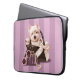 Schattige estie puppy in retro zwarte en witte handtas, geschilderd door kunstenaar Maryline Cazenave.