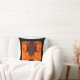 Deze dramatische decoratieve gooiende kussen hebben een abstract fractaal ontwerp van een voodoo-geest in tinten rood, zwart, groen en blauw. Zijn hoorns zijn blauw en hij is omringd door een briljante oranje gaswolk. Het afbeelding wordt op de achterkant herhaald.