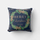 "Voorstel Navy Christmas Wreath Holly Leaf Greenery gooi kussen." Een elegante manier om de scène voor uw voorstel aan de liefde van je leven! Waterverf kunstwerk van een kerstkrans met dennenappels, hulstbladeren en bessen met verzameld bosbladergroen dat met de hand werd geschilderd door internationaal gelicentieerde kunstenares en ontwerpster, Audrey Jeanne Roberts, copyright.