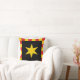 "Sable, een mul van zes punten of binnen een borduurcomponent of -regels." Populaire badge voor het Vorstendom Vindheim in de Society for Creative Anachronism. Achterkant van kussen is een middeleeuws patroon in coördinerende kleuren.