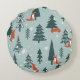 Vossen, spar-bomen, winter, kleurrijk patroon rond kussen