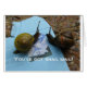 deux escargots bruns ordinaires près d'un timbre d'occasion