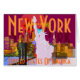 Carte de voeux vintage de voyage de New York de regard. Carte vintage d'impression de voyage de New York de style avec entièrement des textes de customizabe "stupéfier", "New York", "New York" et les "Etats-Unis d'Amérique" et l'horizon et la statue de la liberté célèbres. Un grand grand chèque-cadeau de souvenir de pomme de NYC !