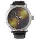Cool, stijlvol en iconisch Voyager Golden Record data polshorloge met lederen band.