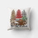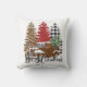 "Merry Christmas" vakantie decorator kussen met een truck in een luipaard print. Bomen op de achtergrond zijn in een zwart-wit geruit patroon en luipaard print. Gepersonaliseerd met uw monogram/initiaal
