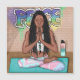 Yoga, vredesgraffiti-kunst. Stadsstraatkunst. Afrikaans-Amerikaanse vrouw die mediteert.